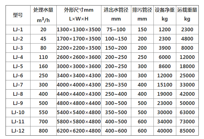 LJ系列泳池水處理曝氣精濾機(jī)技術(shù)參數(shù):